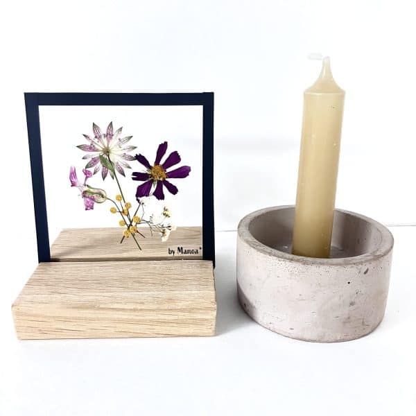 By Manoa maakt uitsluitend gebruik van echte bloemen en planten. Op den duur kan de kleur wat veranderen. Om zo lang mogelijk van je lijstje te genieten is het aan te raden om hem niet in direct zonlicht te zetten.