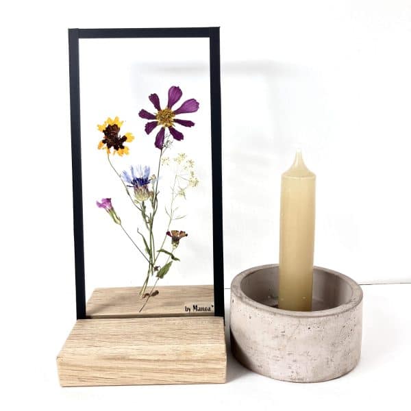 By Manoa maakt uitsluitend gebruik van echte bloemen en planten. Op den duur kan de kleur wat veranderen. Om zo lang mogelijk van je lijstje te genieten is het aan te raden om hem niet in direct zonlicht te zetten.