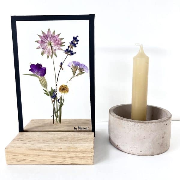 By Manoa maakt uitsluitend gebruik van echte bloemen en planten. Op den duur kan de kleur wat veranderen. Om zo lang mogelijk van je lijst te genieten is het aan te raden om hem niet in direct zonlicht te zetten.